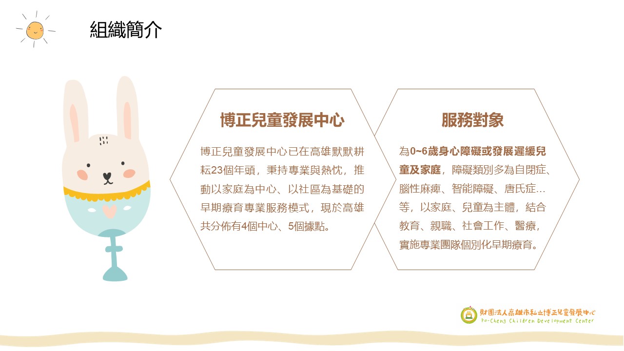 入選單位:財團法人高雄市私立博正兒童發展中心「FUN心療聊,攜手同行 」110年度身心障礙兒童家庭照顧者支持服務計畫